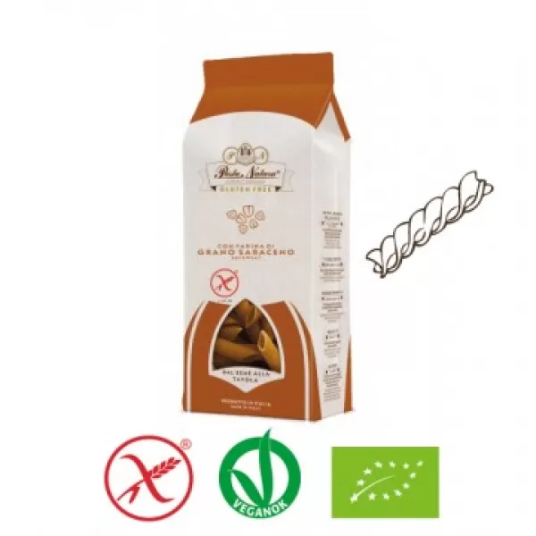 A PASTA NATURA hajdina liszt tészta az Ön egészséges választása, hogy kiváló minőségű és kiegyensúlyozott tápértékkel rendelkező fogást fogyasszon. A hajdina természetesen gluténmentes. A tészta coeliakia betegségben szenvedők számára is alkalmas. Nem használunk állati eredetű összetevőket, így a tésztáink vegán receptek elkészítéséhez használhatók. A PASTA NATURA erőssége a lisztben rejlik Az ügyes feldolgozásnak köszönhetően, mely magában foglalja a lassú szárítást alacsony hőmérsékleten és a bronz formával készített kialakítást, a tészta lehetővé teszi, hogy a fogás különleges legyen.